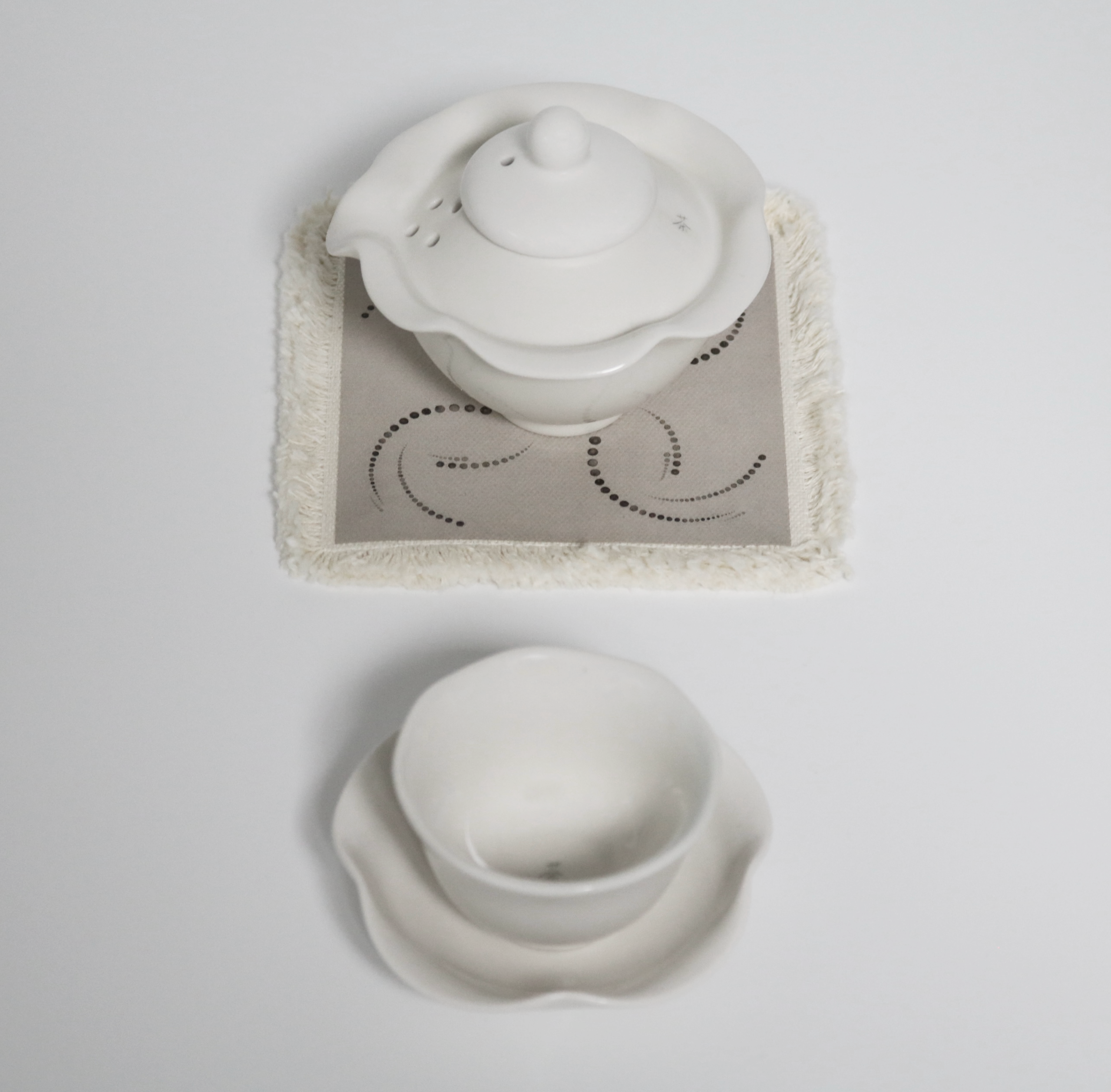 고와 개완 1점, 찻잔 2점, 개완 코스터 1점으로 구성된 티 세트입니다.
