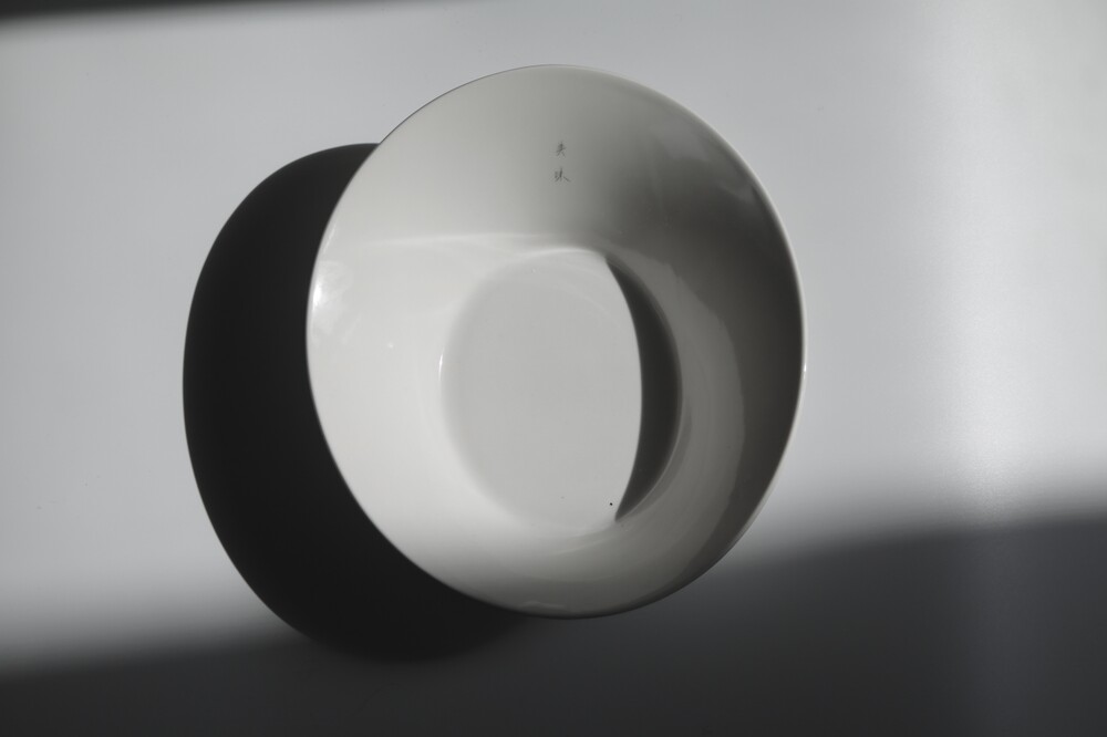 벼루의 형태를 닮은 백자 그릇, 접시 세트입니다.